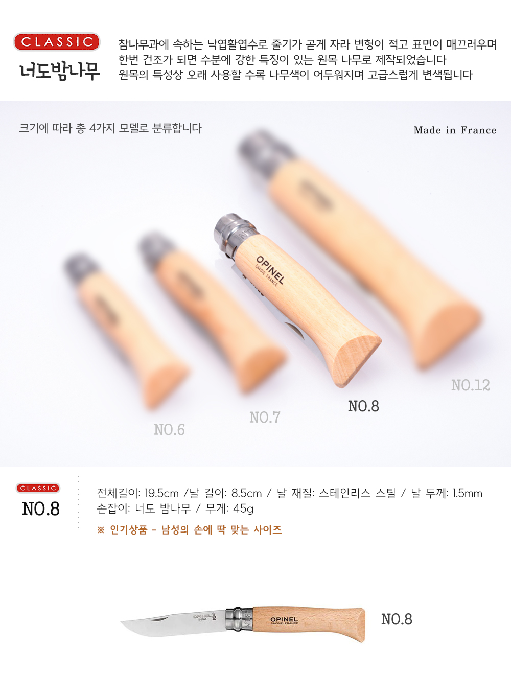 ÇÁ¶û½º ¿ÀÇÇ³Ú ³ªÀÌÇÁ Opinel Classic No.8 Ŭ·¡½Ä °¡Á× ÄÉÀ̽º ÀÌ´Ï¼È °¢ÀÎ Ä·ÇÎ Ä® ¿ÀÇdz¾..
