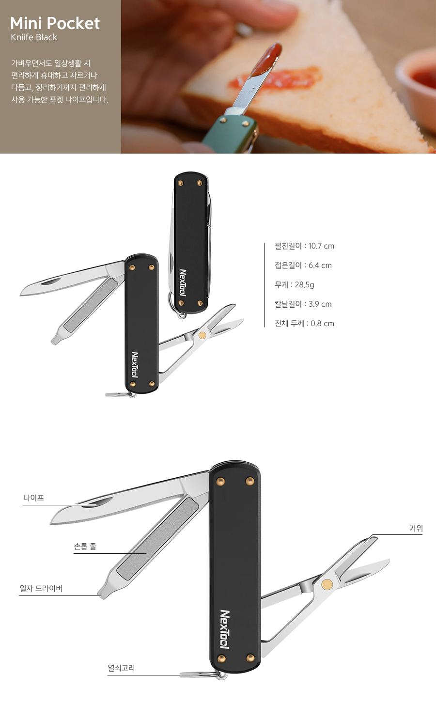 Nextool ³Ø½ºÅø ¸ÖÆ¼Åø Mini Pocket Knife Black ¹Ì´Ï Æ÷ÄÏ ´Ù¿ëµµÅø ³ªÀÌÇÁ Ä® ºí·¢ NE0141..